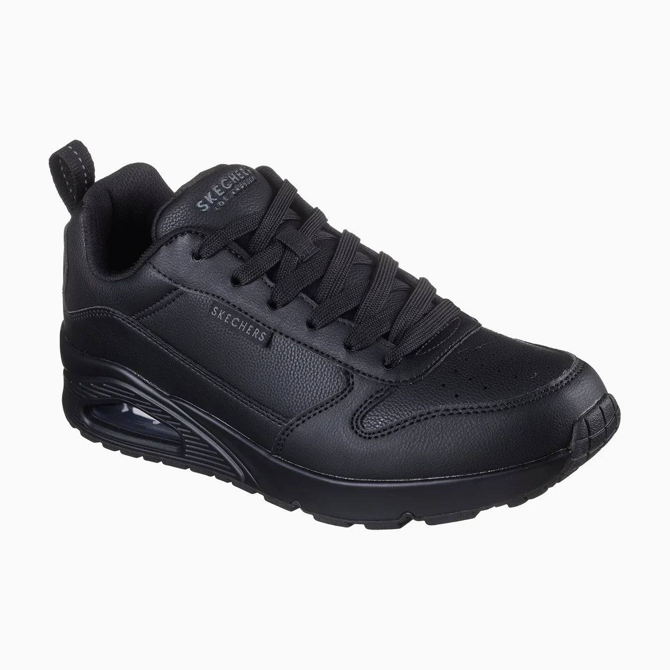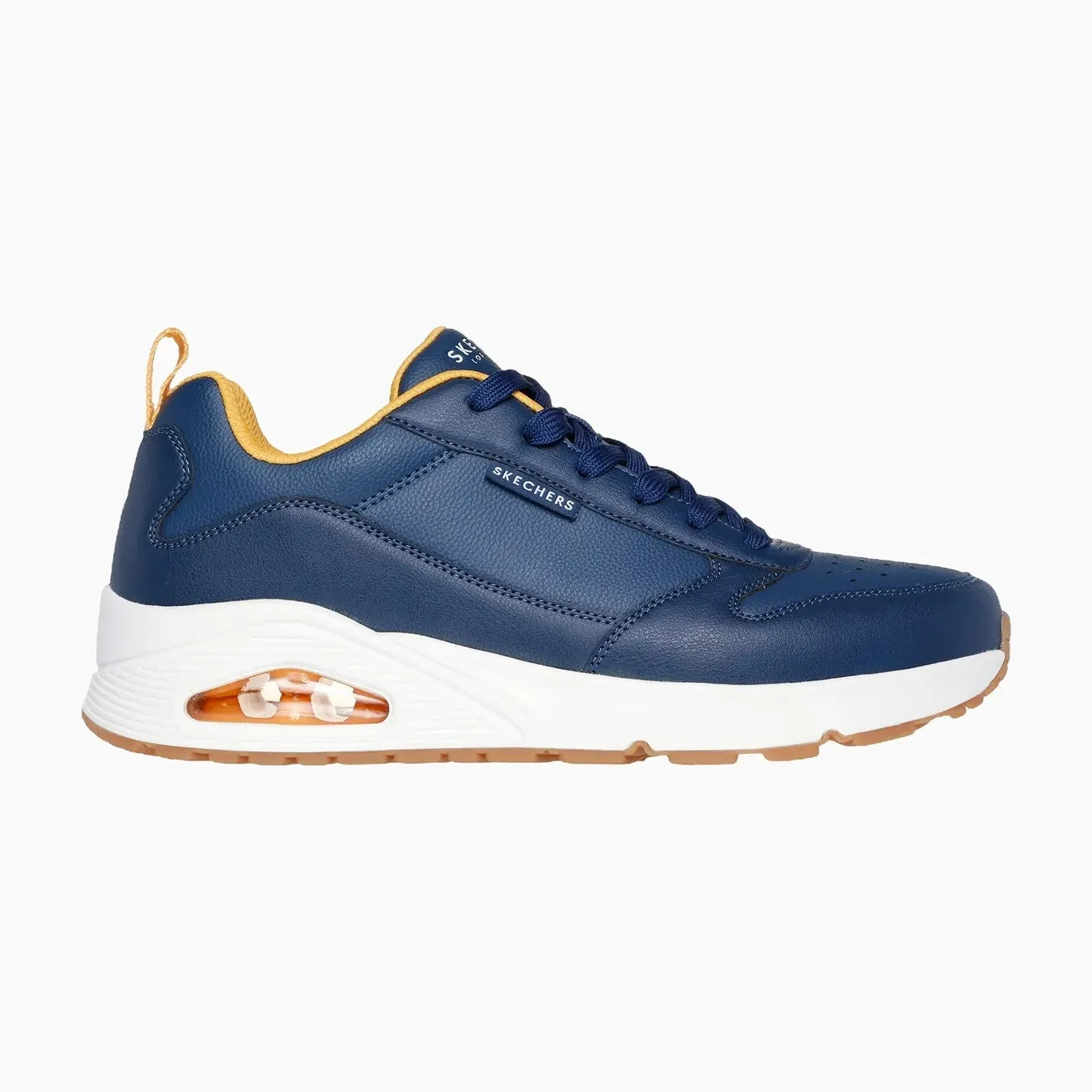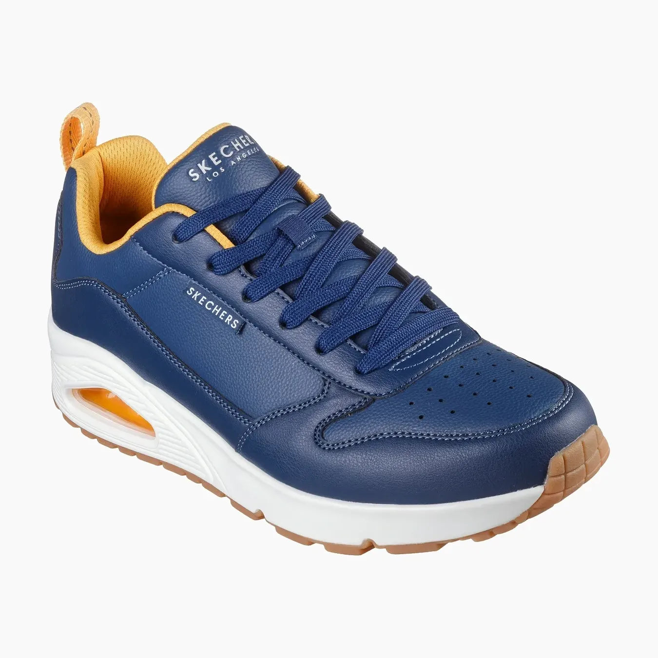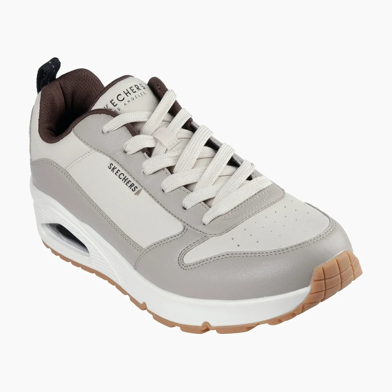 El estilo deportivo y suave y la comodidad fresca se combinan en Skechers Street™ Uno - Alder. Esta zapatilla con cordones presenta una parte superior de cuero sintético con una plantilla Skechers Air-Cooled Memory Foam® y una entresuela con airbag visible Skech-Air®.