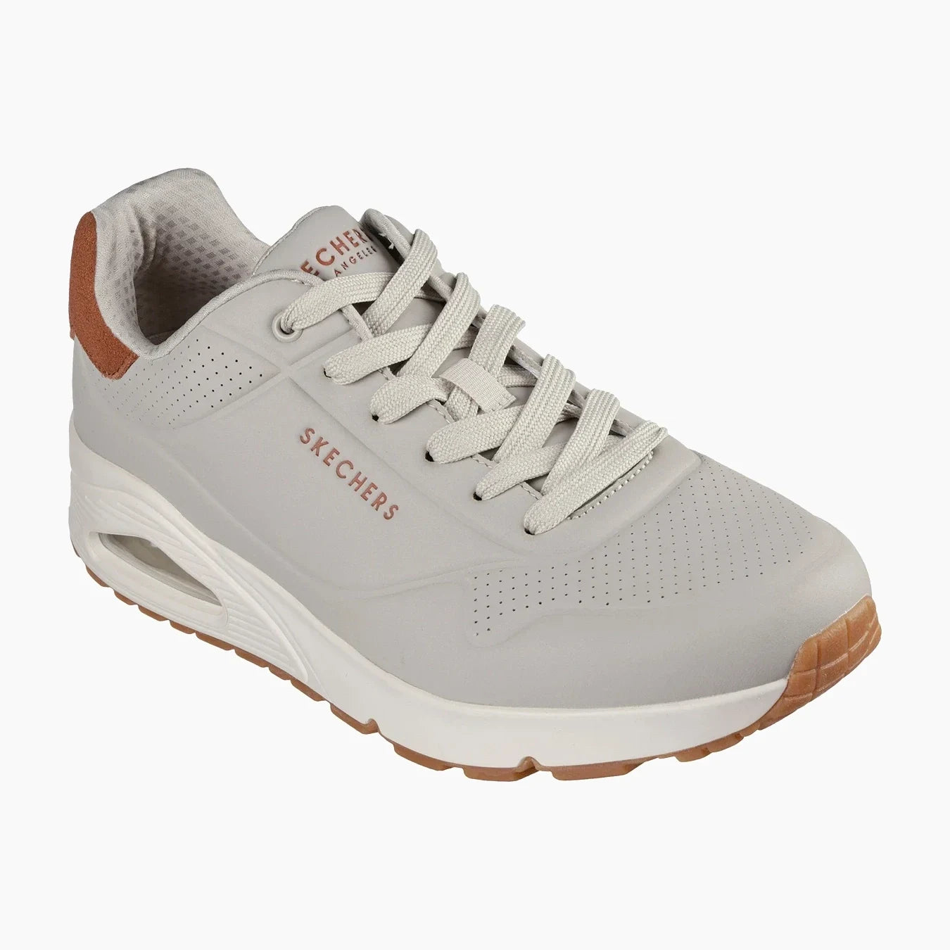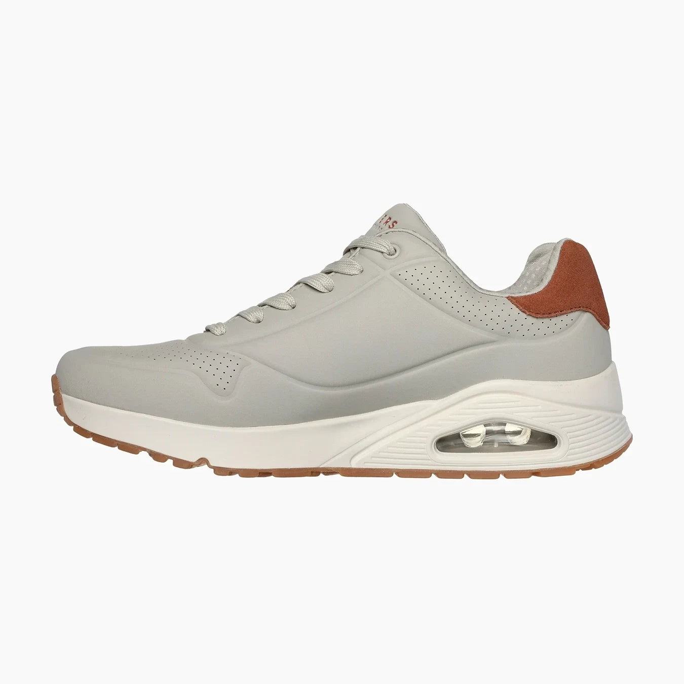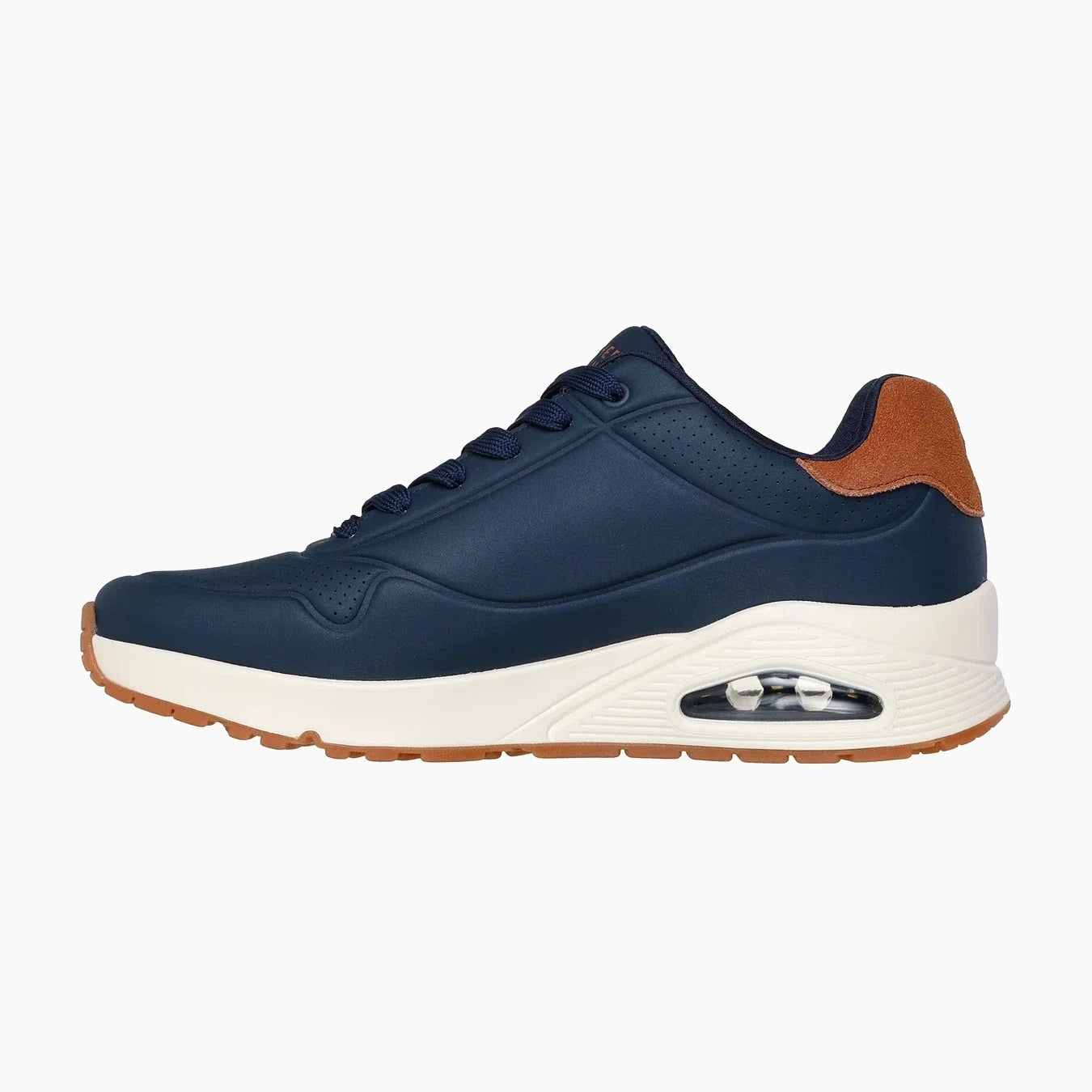 El estilo deportivo refinado se combina con la comodidad en Skechers Street™ Uno - Suited On Air. Este estilo deportivo clásico con cordones presenta una parte superior de durabuck en relieve con ribete de gamuza en el talón, una plantilla Skechers Air-Cooled Memory Foam® y una entresuela con airbag visible Skech-Air®.