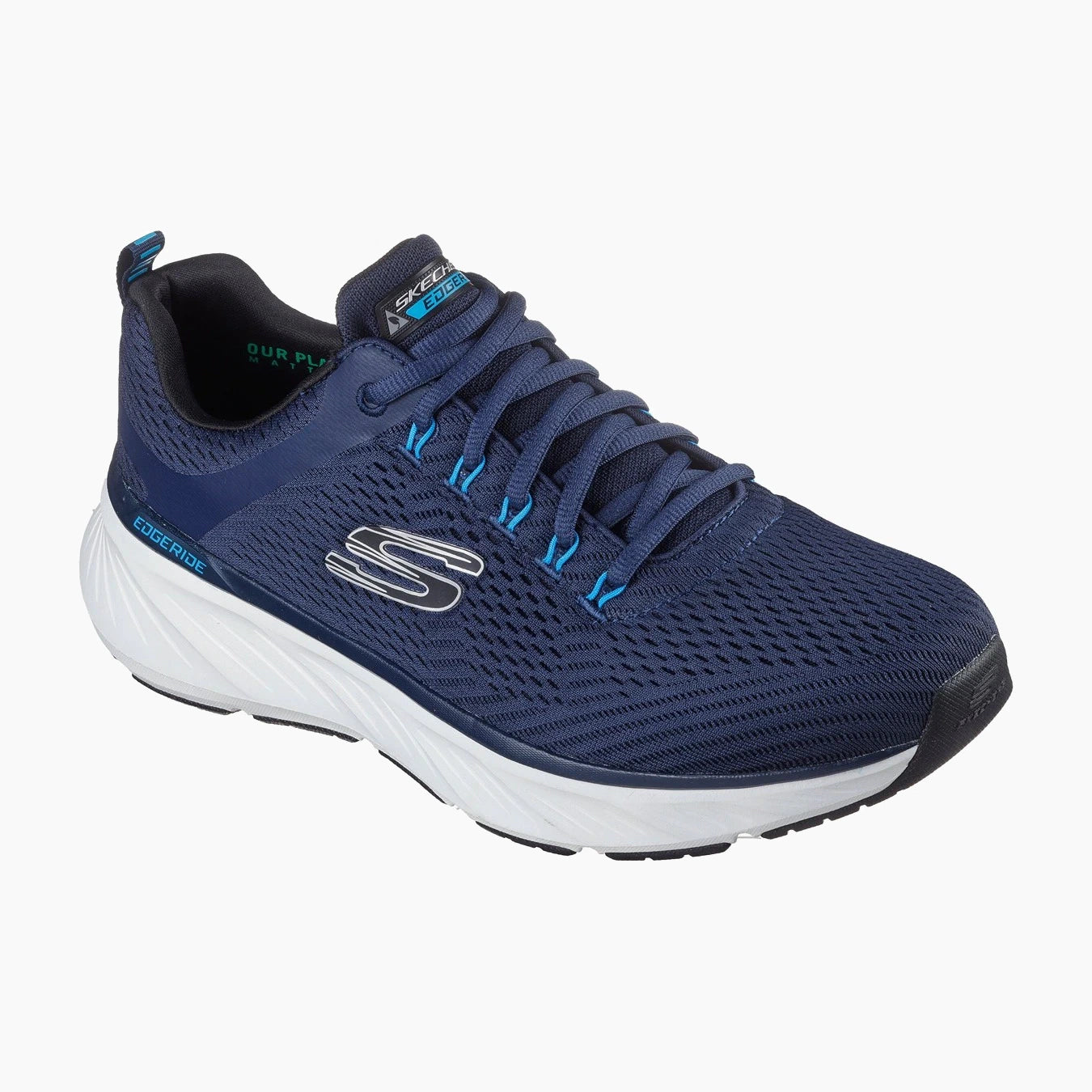 Disfruta de un rendimiento con amortiguación y cuida tu huella con las Skechers Relaxed Fit®: Edgeride - Contention. La parte superior de este producto está fabricada con al menos un 20 % de material reciclado, lo que ayuda a reducir los residuos. Este estilo deportivo vegano cuenta con una parte superior de malla con cordones elásticos, una entresuela con amortiguación y una plantilla Skechers Air-Cooled Memory Foam®. Nuestro Planeta Importa®: Bueno para tus pies. Bueno para el mundo.®